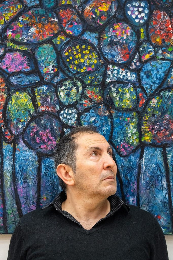 Formé d’abord aux arts de la scène – acteur, comédien, metteur en scène, réalisateur – Nazareth Agopian développe parallèlement une pratique picturale depuis plus de 25 ans. Depuis 5 ans, il se consacre entièrement à la peinture. Sa toile devient un théâtre où se joue la comédie universelle des émotions et des couleurs.